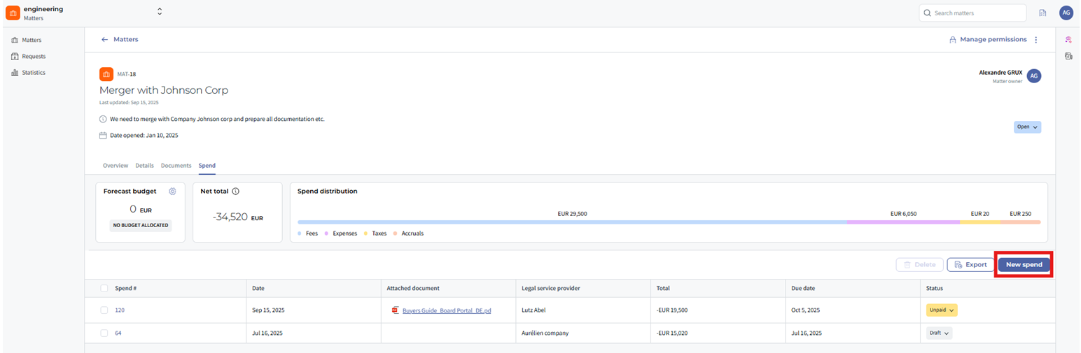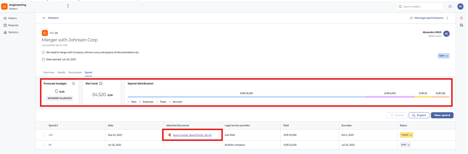- Click on the Spend tab within the matter workspace.