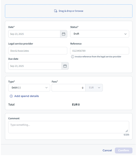 - ✅ Record and track invoices from law firms and vendors